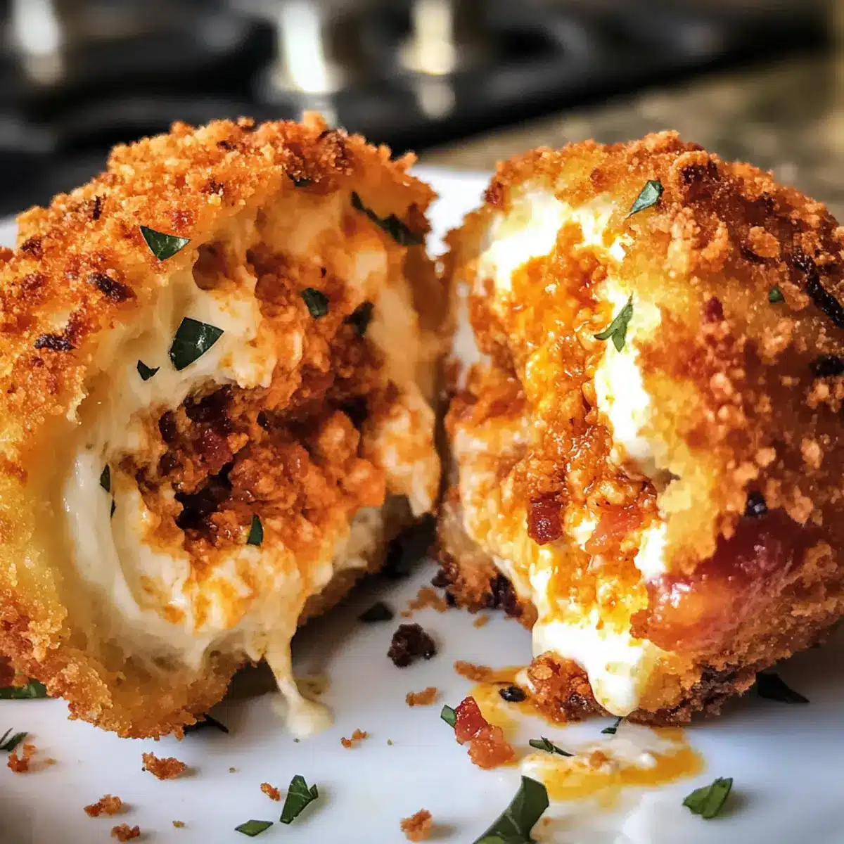 These Buffalo Chicken Bacon Mozzarella Bombs are ideal for meal prep enthusiasts! You can assemble them up to 24 hours in advance by preparing each bomb and placing them on a baking sheet lined with parchment paper. Cover them tightly with plastic wrap and refrigerate to keep them fresh and flavorful. This prep time helps the flavors meld beautifully, ensuring every bite is just as delicious when you’re ready to cook. When it’s time to indulge, simply fry or bake the bombs directly from the fridge, following the cooking instructions, for delightful results without the last-minute hustle. Enjoy a scrumptious snack with minimal effort!