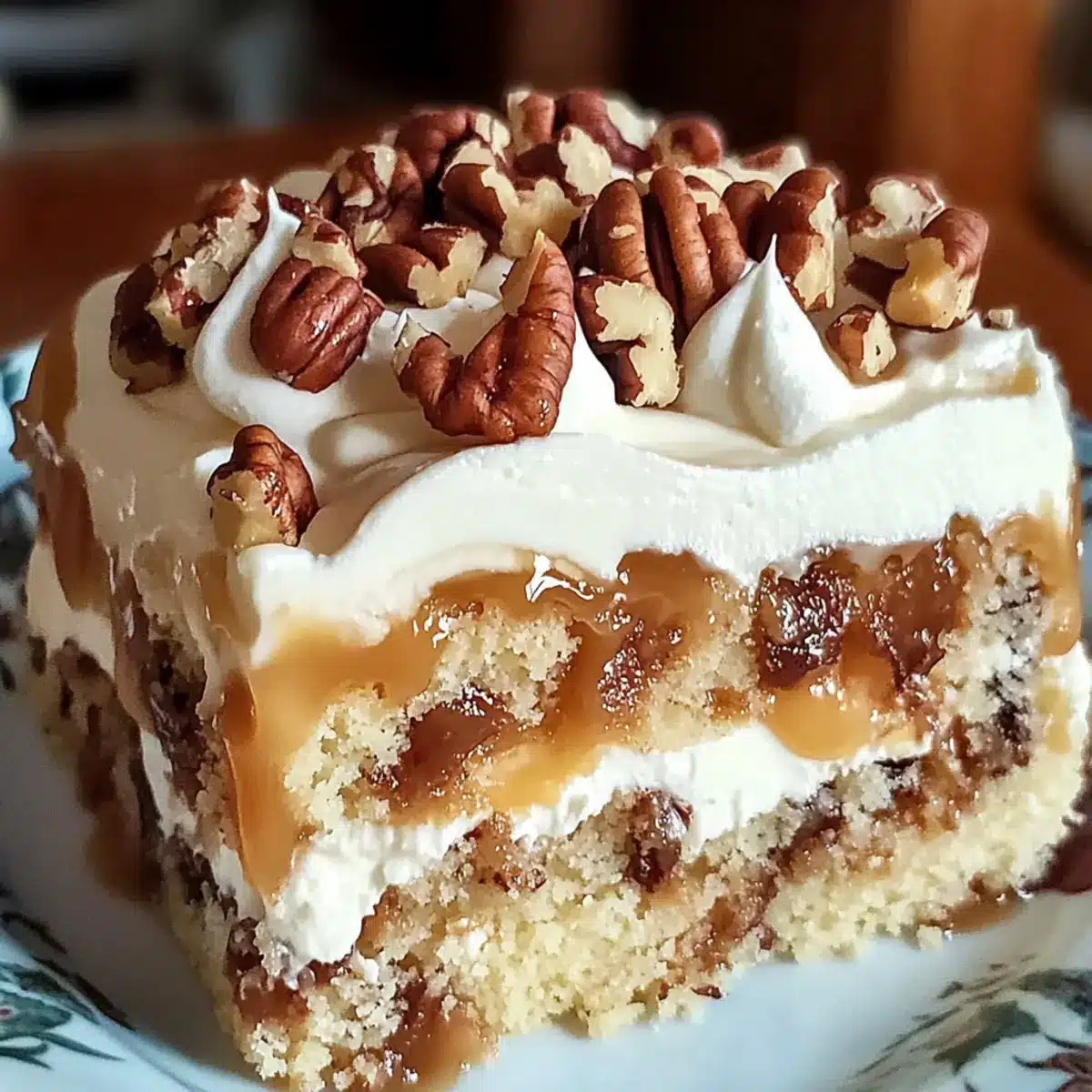 Decadent Butter Pecan Praline Poke Cake to Delight Your Tastebuds