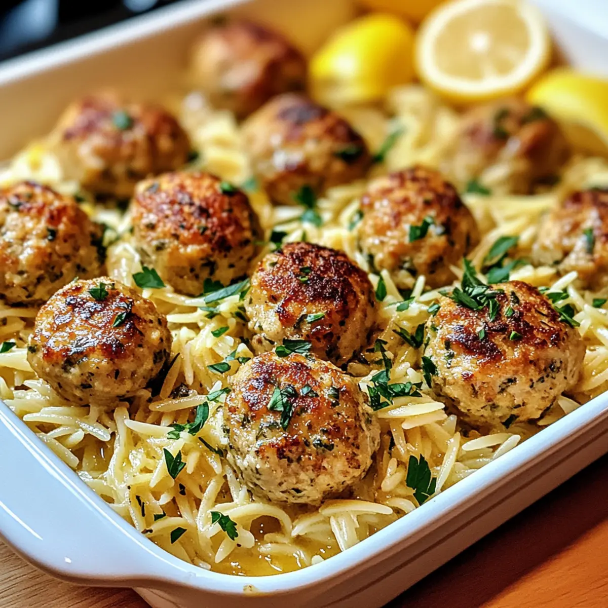 Savory Greek Chicken Meatballs with Zesty Lemon Orzo Delight