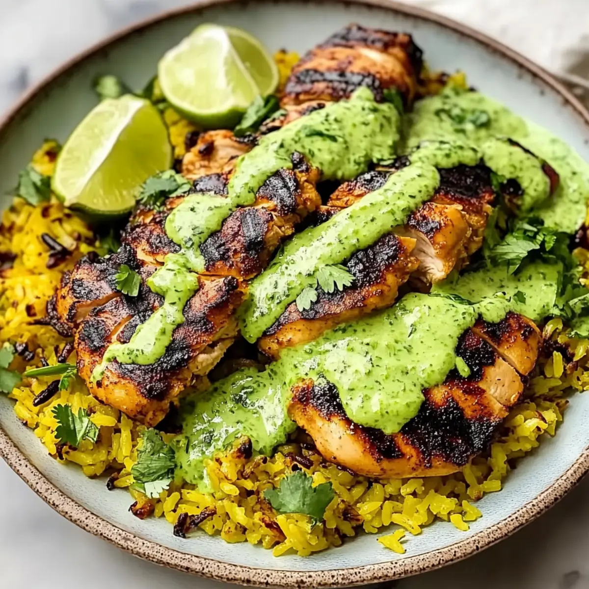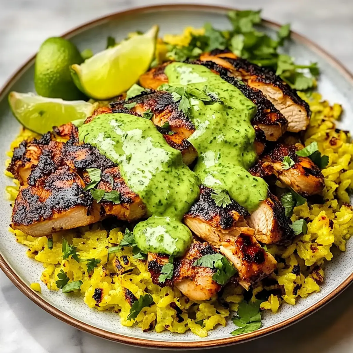 - Assemble the Dish: Serve rice topped with chicken and drizzled with the green sauce. Garnish with fresh cilantro and lime wedges.