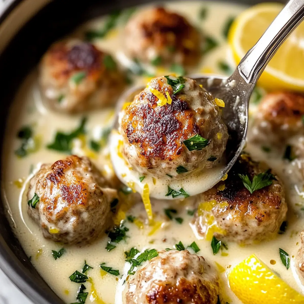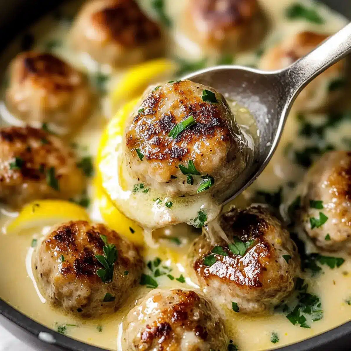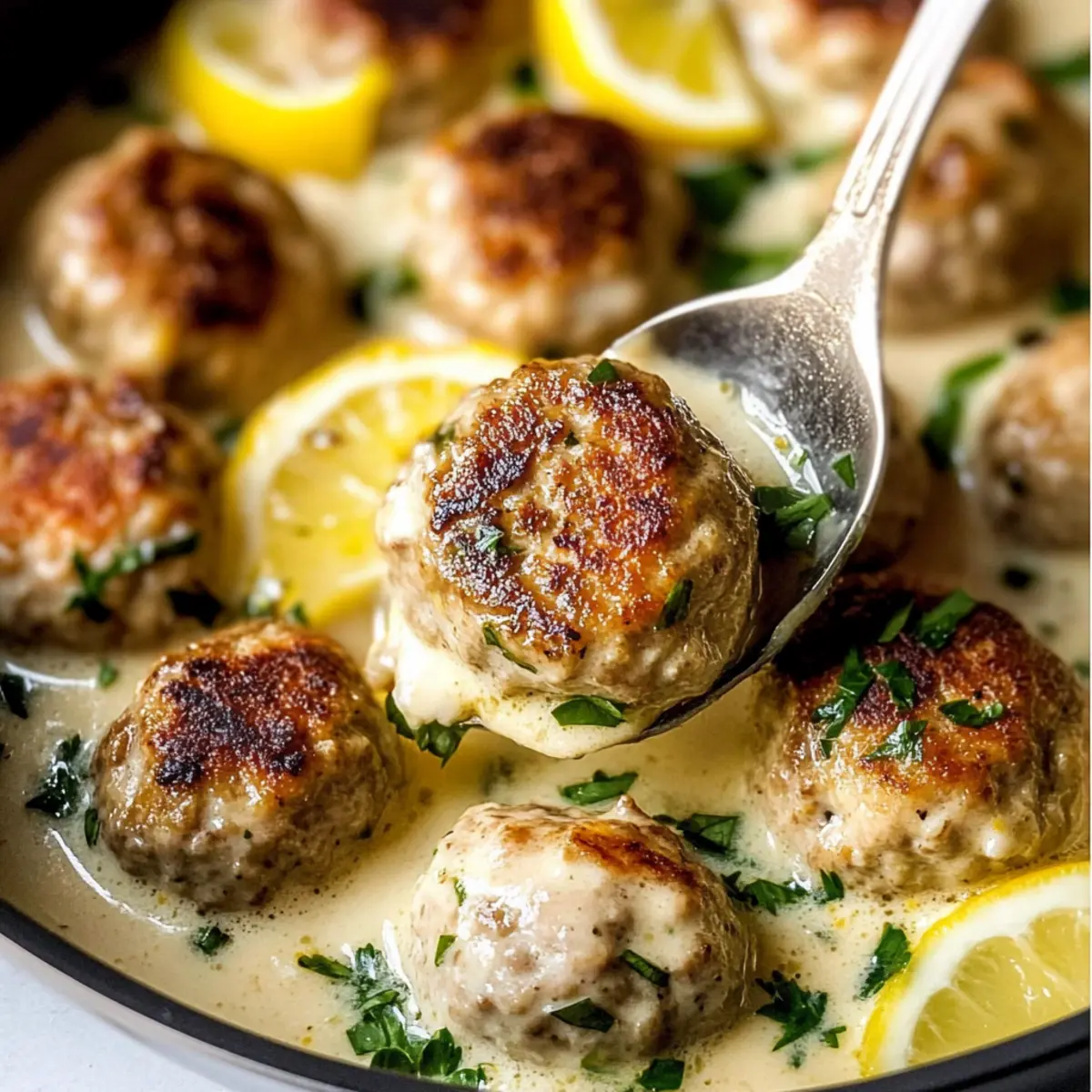 Unforgettable Flavor: The luscious lemon cream sauce envelops juicy chicken meatballs, creating a dish that balances tangy and savory beautifully.