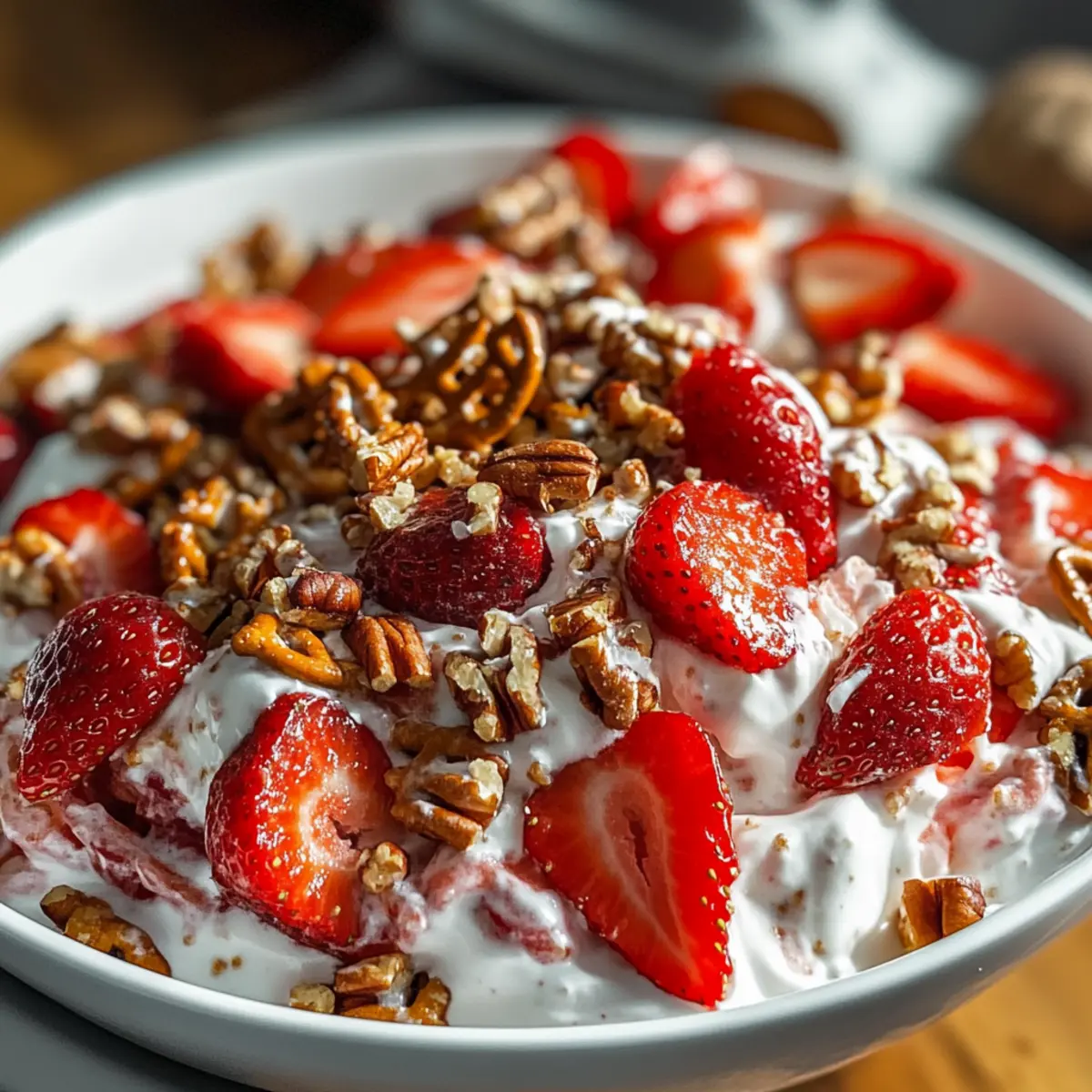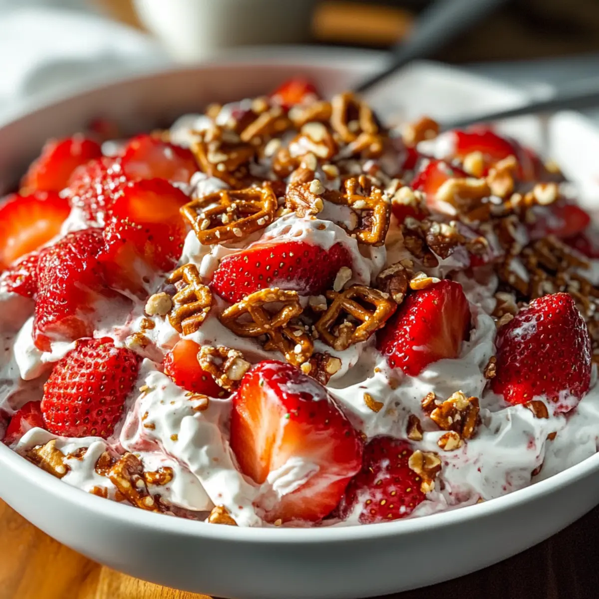 Absolutely! You can prepare the creamy mixture and the pretzel topping a few hours ahead. Just store them separately in the refrigerator, and mix in the fresh strawberries and pretzel crunch just before serving to ensure everything maintains its delightful texture.
